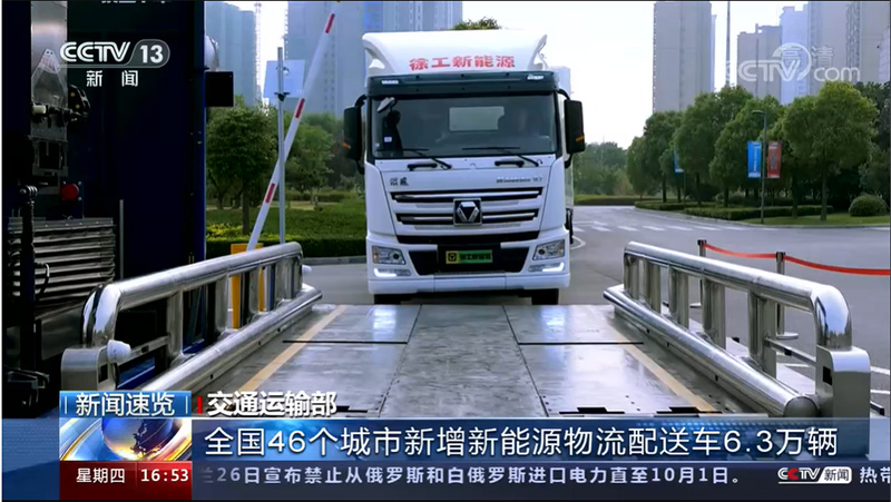 5月27日,徐工新能源換電牽引車作為綠色物流運輸代表亮相央視《新聞直播間》